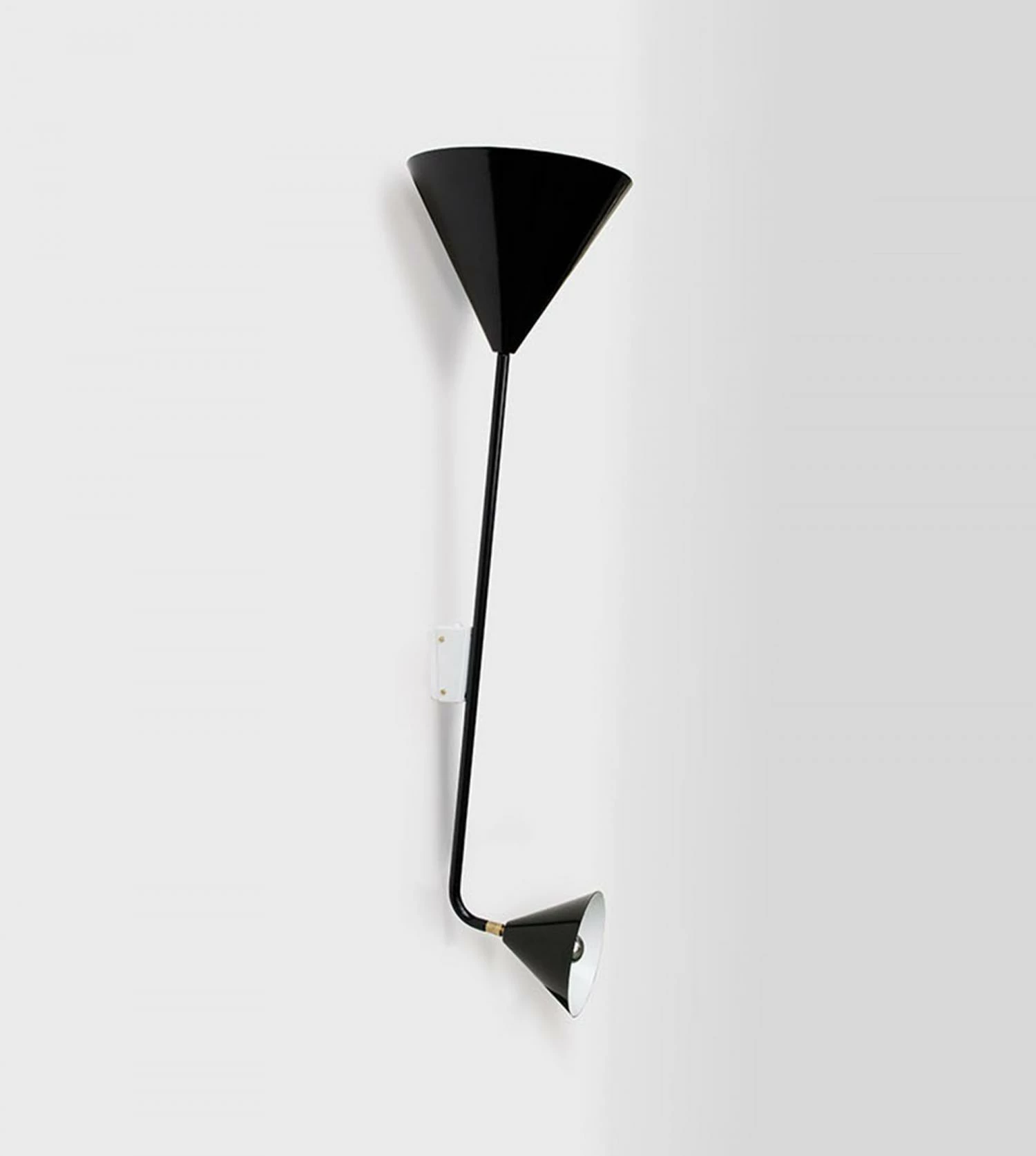 L’applique 2 cĂ´nes Ă©ditĂ©e par Atelier Areti a beau ĂŞtre minimaliste, elle procure un maximum d’effet. Deux cĂ´nes, c’est tout et pourtant c’est beaucoup quand un grand nom du design s’empare du sujet et l’exploite avec habiletĂ©. Graphique, essentielle, sobre, la lampe two cones wall light de la maison Areti joue sur l’opposition entre un grand rĂ©flecteur conique dirigĂ© vers le plafond qui procure un Ă©clairage indirect pour briller sans Ă©blouir et un petit abat-jour de la mĂŞme forme qui dirige latĂ©ralement une autre source lumineuse, en appui de la principale. 2 cĂ´nes, 2 lampes en une, l’applique murale mixte en acier thermolaquĂ© est aussi belle que fonctionnelle dans son rĂ´le de luminaire dĂ©diĂ© Ă l’éclairage gĂ©nĂ©ral d’une pièce que dans celui de lampe d’appoint. Lampe murale Ă deux tĂŞtes l’applique 2 cones Ă©ditĂ©e par Atelier Areti sobre et Ă©lĂ©gante ne s’embarrasse pas d’accessoire et va Ă l’essentiel : une fine structure mĂ©tallique noire surmontĂ©e aux extrĂ©mitĂ©s par deux rĂ©flecteurs coniques. Un raccord en laiton vient rĂ©veiller l’ensemble avec Ă©lĂ©gance et noblesse. Sur les murs d’une entrĂ©e, d’un salon, d’une salle Ă manger ou d’une cuisine, au-dessus d’un canapĂ©, d’une table ou d’un plan de travail, l’applique two cones Areti sait se rendre indispensable, briller en sociĂ©tĂ© sans aveugler. Peu importe la dĂ©coration (contemporaine, classique, industrielle, etc.) l’applique murale deux cĂ´nes Areti possède l’élĂ©gance naturelle de ceux qui sont capables de s’adapter Ă toutes les situations sans se dĂ©partir de leur personnalitĂ© et de leur charisme (Ă l’image de l’applique disc and sphere en vente chez BLOU). Luminaire design bicĂ©phale graphique et gĂ©omĂ©trique, l’applique deux cĂ´nes Atelier Areti fabriquĂ©e artisanalement et Ă la demande est dĂ©finitivement unique.