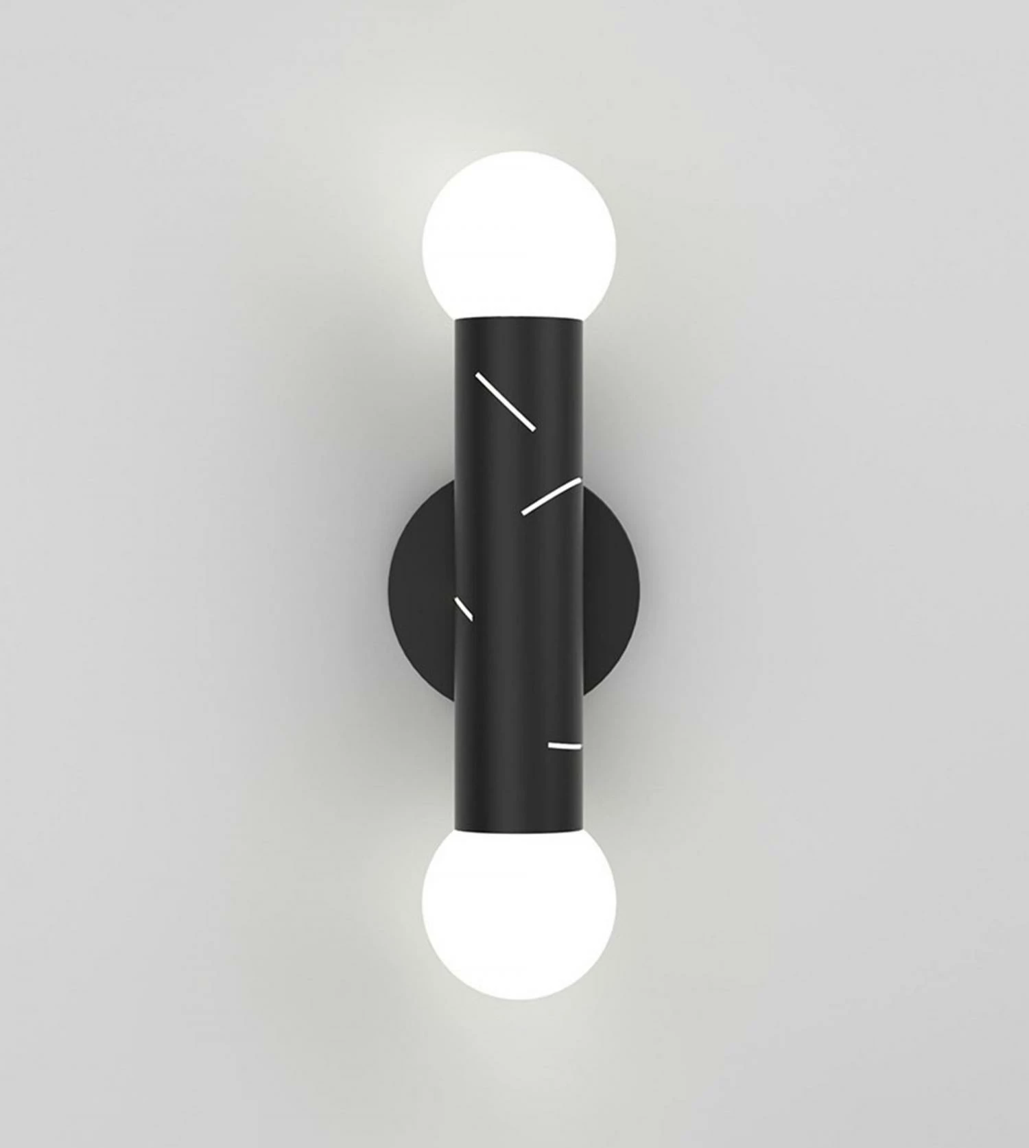 En doublant le nombre d’ampoules de sa wall light Birch (en vente chez BLOU), la maison Areti a donné naissance à une applique murale birectionnelle élégante et parfaitement symétrique. Le motif de la gamme de luminaires design Birch (collection composée de lampadaires, suspensions et appliques disponibles chez BLOU) inspiré de l’écorce noire et blanche du bouleau évoque à la fois la nature, dont Atelier Areti s’est inspirée, et les années 1980 avec son graphisme bicolore et tacheté. Solution d’éclairage idéale pour toutes les occasions, l’applique Birch 2 Globes ponctuera les déambulations de l’amateur de design dans toutes les pièces de la maison. Seule ou multipliée dans un long couloir, doublée en tête de lit en guise de lampes de chevet ou utilisée en tant que luminaire solitaire sur les murs d’un salon, l’applique Birch 2 Globes réveillera tous les univers décoratifs (classiques ou contemporains). Graphique et chic l’applique Birch 2 Globes Areti en métal thermolaqué disponible en noir, blanc ou en version colorée (voir dans caractéristiques) permet d’éclairer simultanément le sol et le plafond grâce à ses deux ampoules sphériques placées à chaque extrémité du corps cylindrique de la lampe. A l’image de l’ensemble du catalogue Atelier Areti l’applique design Birch 2 globes est fabriquée à la demande et artisanalement dans des matériaux d’exception. Depuis 2008 l’univers de la décoration et du luminaire brille d’un éclat particulier grâce à l’audace créative de la maison Areti qui propose des pièces lumineuses authentiques et magnétiques qui ont su séduire particuliers et professionnels. Luminaire design à deux têtes pour l’hôtellerie ou la maison, l’applique Birch 2 Globes Atelier Areti reprend le flambeau.