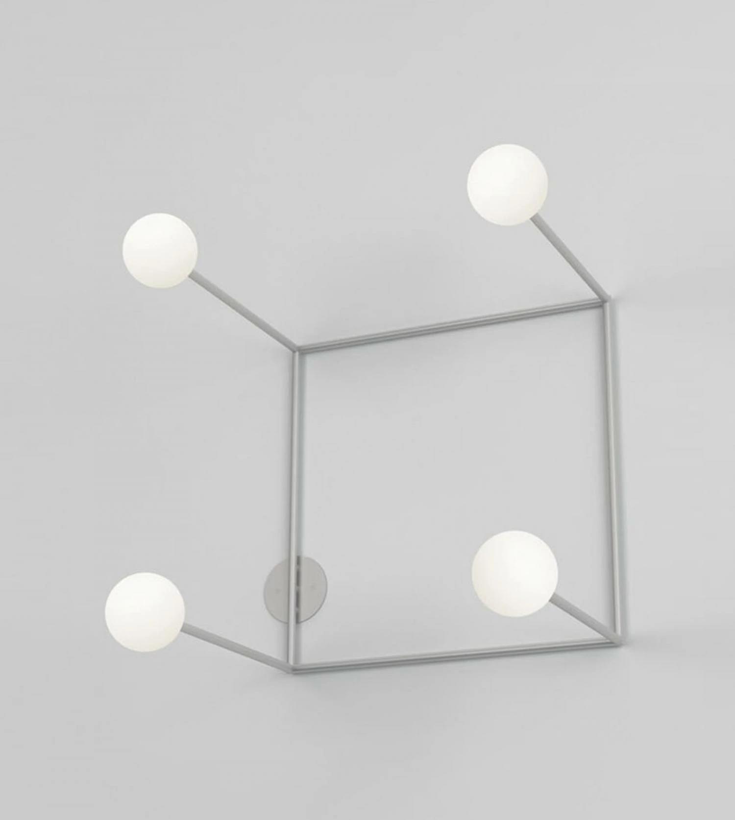 Avec son applique Floating Atelier Areti fait entrer le luminaire design dans une nouvelle dimension. Wall light originale, fascinante et architecturale, la lampe murale Floating imaginée par la maison Areti ressemble à une véritable leçon de géométrie dans l’espace. Avec sa structure carrée de 23 cm de côté et ses 4 branches perpendiculaires à l’extrémité desquelles autant d’ampoules ont trouvé place, l’applique Floating Areti crée un effet d’optique saisissant, une illusion de flottement. Pièce décorative hors norme, la lampe Floating Areti est également une solution d’éclairage design performante grâce à ses 4 ampoules réparties en carré. Luminaire 3D, prisme lumineux, l’applique Floating dépasse le cadre traditionnel de la lampe domestique pour s’inscrire dans une nouvelle dimension. L’objet du quotidien devient merveilleux et changeant en fonction de l’angle choisi pour le regarder. Disponible avec plusieurs finitions et matériaux (laiton brossé, nickel, métal thermolaqué, etc.) l’applique design Floating Areti peut intégrer une grande variété d’intérieurs, des plus classiques au plus tendance. Luminaire atypique en volume, l’applique Floating Areti offre un éclairage délicatement travaillé avec son jeu d’ombre et de lumière. Lampe murale architecturale, l’applique Floating Areti trouvera sa place au-dessus d’un sofa dans un séjour, à proximité de la table d’une salle à manger ou dans une chambre à coucher. Depuis 2008 la maison Areti bouscule l’univers du luminaire design avec ses créations artisanales (les appliques Floating sont fabriquées en Allemagne à la main) aux influences multiples : dans la nature pour les appliques Alouette ou dans la géométrie avec les appliques Triangle en laiton (wall lights disponibles chez BLOU). Avec son applique murale design Floating Atelier Areti poursuit ses heureuses expérimentations lumineuses qui ne manquent pas de relief.