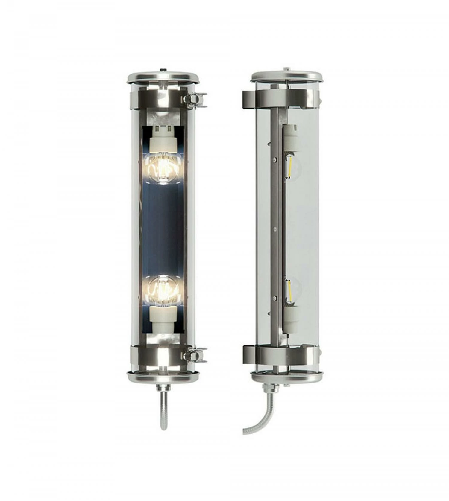 Matériaux : tube en verre borosilicaté inox, colliers et flasques en inox marin, réflecteur en aluminium anodisé