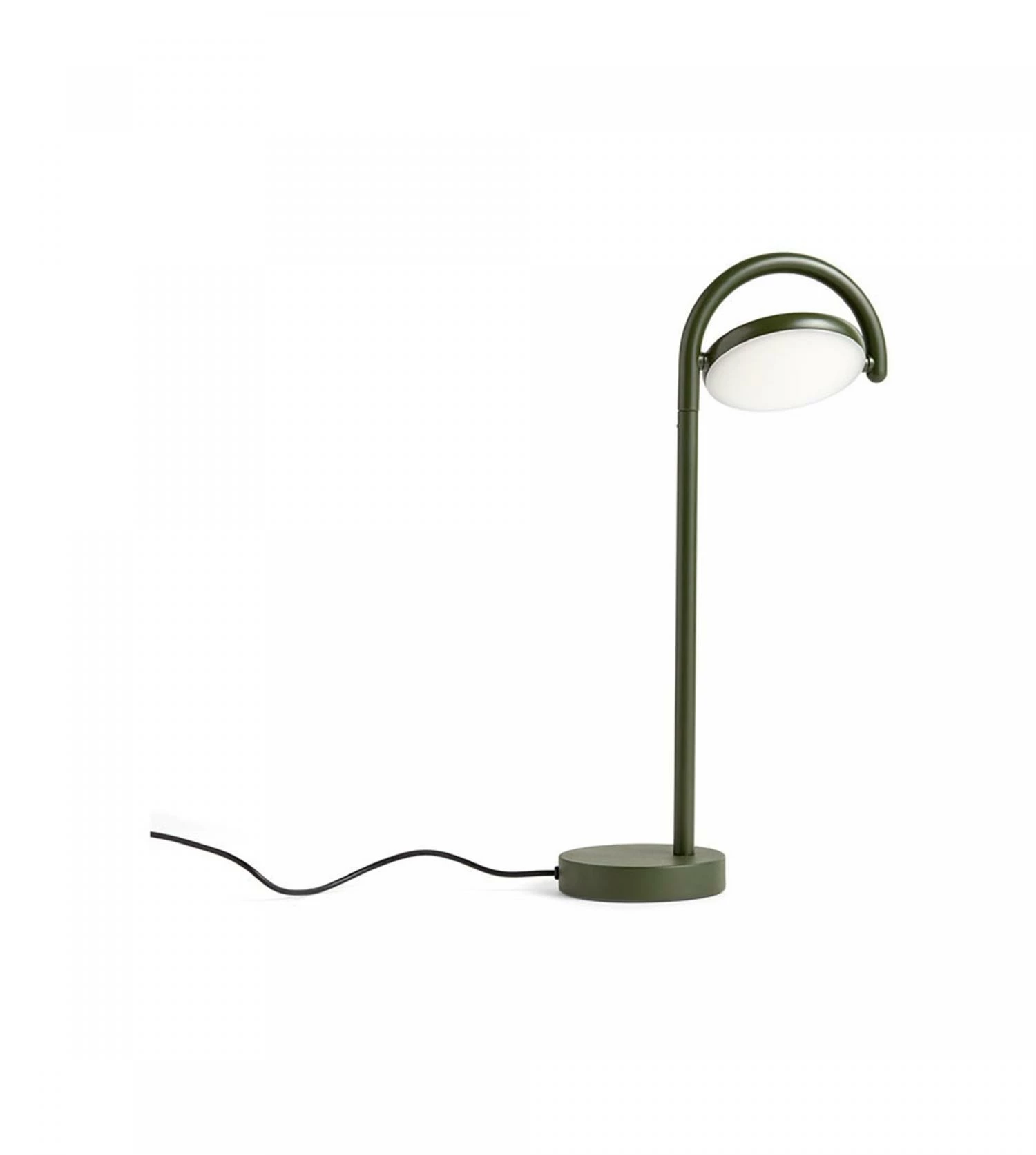 lampe en aluminium moulé sous pression et tube d’acier vertical avec revêtement en poudre mate, paliers en nylon moulé par injection et diffuseur translucide en polycarbonate (PC) et contrepoids interne en fonte de sable.