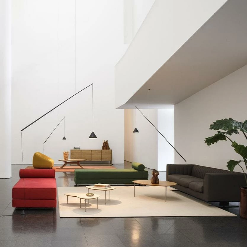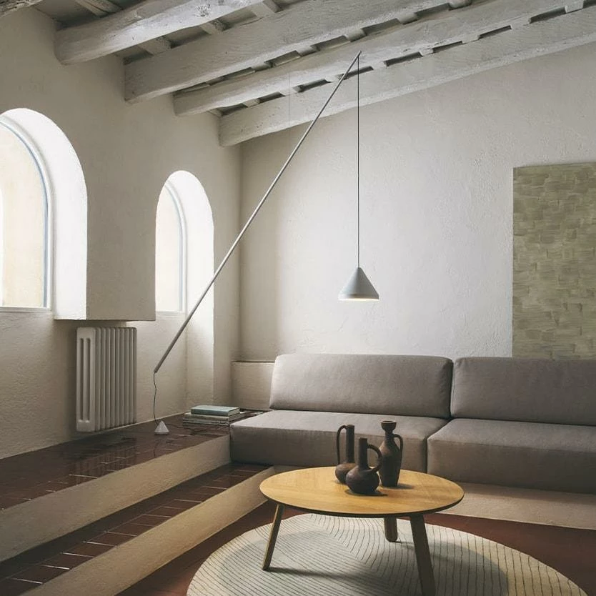 Avec son lampadaire North l’éditeur de luminaires design Vibia a trouvé le parfait équilibre entre la suspension et la floor lamp. Véritable prouesse technique réalisée par le designer israélien Arik Levy, le lampadaire North 5666 de la maison barcelonaise Vibia assume son élégante originalité, sa proposition lumineuse atypique en réalisant un brillant numéro d’illusion. Suspendu au plafond grâce à un discret câble en acier le lampadaire minimaliste North, seulement retenu sur terre par un contrepoids conique, ne touche quasiment pas le sol. Luminaire LED haut de gamme aux allures d’esquisse, cette solution d’éclairage contemporaine épurée s’adapte aux lieux et aux besoins grâce à sa tige et son abat-jour repositionnables. Décliné en plusieurs versions colorées (noir, blanc, beige et bleu) le lampadaire balancier North de la marque design Vibia trouvera sa place aussi bien dans les univers d’inspiration classique que dans les ambiances décoratives contemporaines. La noblesse de cette solution d’éclairage architecturale fabriquée en fibre de carbone et aluminium lui permet de prétendre également au titre d’élément décoratif design d’exception, à l’image du catalogue de la marque qui propose des solutions d’éclairage hors norme qui subliment le quotidien. Luminaire design destiné à offrir un éclairage direct, à créer un halo lumineux protecteur et chaleureux, le lampadaire North 5666 trouvera sa place à proximité d’un sofa, d’un fauteuil ou d’une table à manger pour mettre en lumière sessions de lecture et moments de convivialité. Essentiel, graphique, chic, ce luminaire possède le bon goût de réveiller un lieu sans jamais l’écraser ou lui voler la vedette, intégrant un décor tout en assumant sa fantaisie décalée. Légèreté, design, fonctionnalité, émerveillement, dynamisme et audace font bon ménage chez le lampadaire North qui élira domicile dans un salon, un bureau, une salle à manger ou une chambre à coucher. Déclinée sous d’autres formes comme l’incroyable lampe North version 5600 à deux corps et deux têtes (en vente chez Blou), ce luminaire design prouve s’il le fallait que la maison Vibia ne perd jamais le nord.