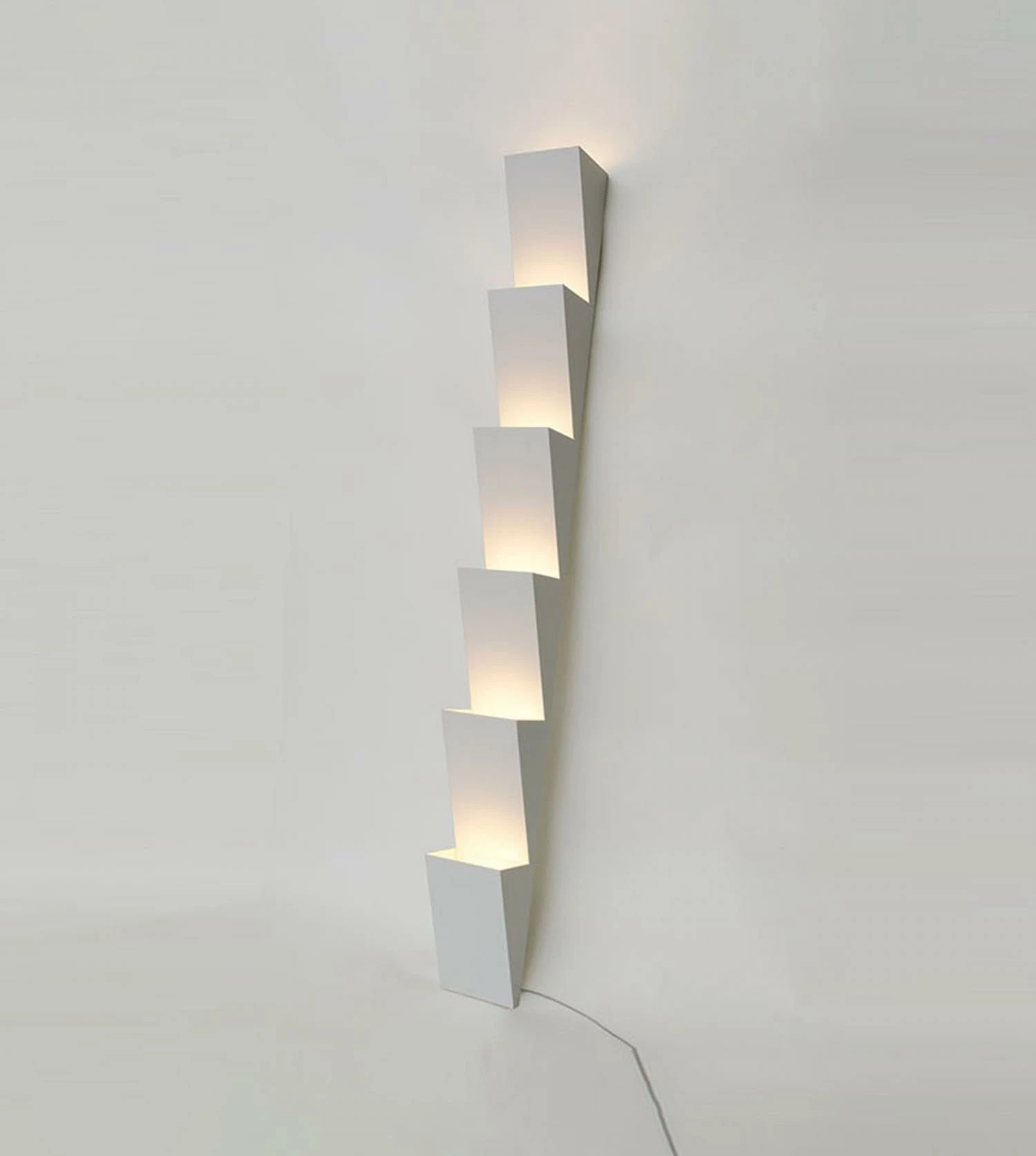 Avec son lampadaire Steps en forme d’escalier Atelier Areti revisite la montée des marches et en livre une version lumineuse et design hors norme. La lampe Steps floor light éditée par la maison Areti, en métal thermolaqué (noir ou blanc) et acrylique, sobre et élégante, est une création lumineuse audacieuse de la marque fondée en 2008 par les sœurs Kerschbaumer. Depuis leurs débuts ces jeunes designers n’ont eu de cesse de réinventer l’univers du luminaire à travers des propositions poético ludiques comme les lampadaires 2 Alouettes ou sculpturales avec les lampadaires Bonhomme (en vente chez BLOU). Le studio Areti revendique de nombreuses influences, héritage des vies professionnelles passées de Gwendolyn et Guillane Kerschbaumer,au rang desquelles figurent notamment l’architecture dont l’empreinte est ici manifeste. Escalier de lumière composé de 6 ampoules et autant de marches, le lampadaire Steps Atelier Areti, luminaire design sobre et élégant, offre un éclairage indirect et multidirectionnel idéal pour dessiner une ambiance enveloppante et chaleureuse. Disponible en deux tailles, version small ou large (voir dimensions dans caractéristiques) le lampadaire Steps séduira les amateurs de décoration à la recherche d’une pièce originale et authentique conçue pour se fondre dans une grande variété d’univers. Ambiance classique, décoration moderne, voire tendance, chaque intérieur peut devenir le parfait écrin de ce luminaire d’exception qui sait rester discret malgré sa personnalité et ses dimensions (1 m 50 ou 2 m selon la déclinaison choisie). Une des grandes réussites de la maison d’édition Atelier Areti vient de l’accord parfait a priori paradoxal entre charisme et retenue. Le succès de la marque tient également à son savoir-faire inégalé, à sa volonté de s’affranchir d’une production de masse en proposant uniquement des luminaires design fabriqués artisanalement et à la demande. Le lampadaire Steps par Areti, trouvera sa place dans une entrée, contre les murs d’un salon ou d’une salle à manger et pourra également faire office de solution d’éclairage dans une chambre à coucher. Depuis 2008 Atelier Areti poursuit son ascension dans l’univers du design. Pas à pas. Step by step.