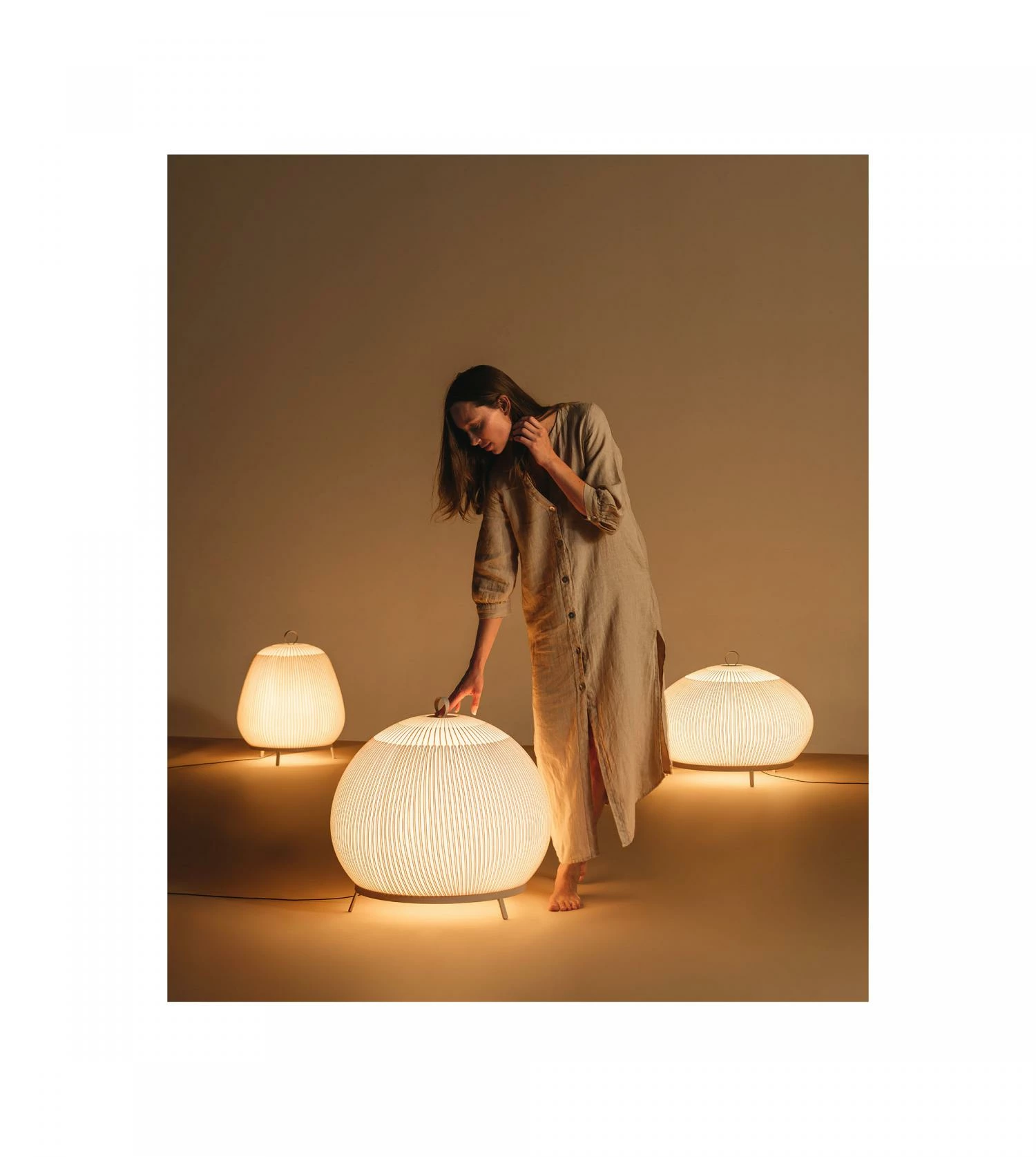 La collection de lampes Knit repose sur l’idée de formes lumineuses dont la texture magnétique invite à s’en approcher. Comme son nom l’indique, la lampe Knit a son abat jour en fil tricoté d’ou s’échappe une douce lumière, chaude et dorée. Des teintes subtiles qui vont du gris chaud à l’ocre, en passant par des nuances cuivrées et rose.