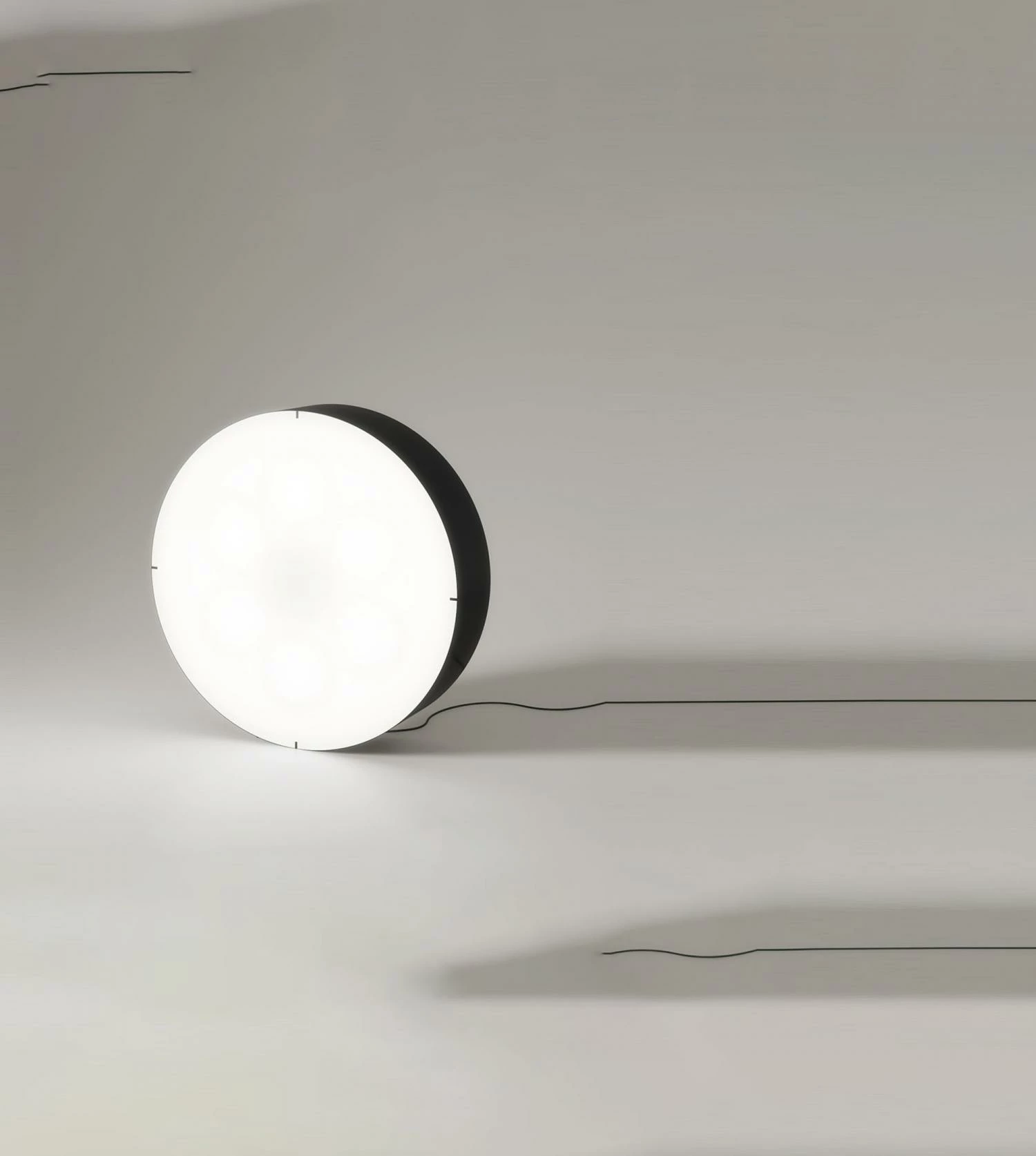 Graphique, épurée, moderne, la lampe à poser Round éditée par la maison Atelier Areti, luminaire design fabriqué en métal thermolaqué (noir ou blanc selon la finition choisie) et acrylique, trouvera sa place sur un meuble (une enfilade, une table, une bibliothèque) ou directement sur le sol dans un salon, une salle à manger, une entrée, un couloir, ou une chambre à coucher. La lampe Round floor light, utilisée seule ou en duo avec un modèle semblable diffuse une lumière douce et bienveillante parfaite pour un éclairage d’ambiance. Minimaliste et géométrique la lampe à poser Round est une pièce design intemporelle, un disque lumineux qui pourra rayonner dans un intérieur contemporain ou dans un univers décoratif plus classique. D’un diamètre de 60 cm, cette grande floor light possède une personnalité et une présence capables de révéler le potentiel d’un lieu tout en créant une ambiance intimiste grâce à son diffuseur en verre opalescent. Depuis 2008 la maison Atelier Areti propose des luminaires d’exception aux influences multiples qui ont tous un point commun : l’excellence. Fabrication artisanale, dimension architecturale, sélection rigoureuse des matériaux, tout contribue à faire de chacun des luminaires Areti une œuvre d’art lumineuse. Du lampadaire Bonhomme à la lampe Round en passant par le lampadaire 2 Alouettes (luminaires en vente chez BLOU), le catalogue Atelier Areti ne cesse de s’enrichir de pièces originales, fonctionnelles et audacieuses qui font le plaisir des amateurs de design et de décoration du monde entier. Avec Atelier Areti pas de mauvaises surprises, tout tourne toujours rond.