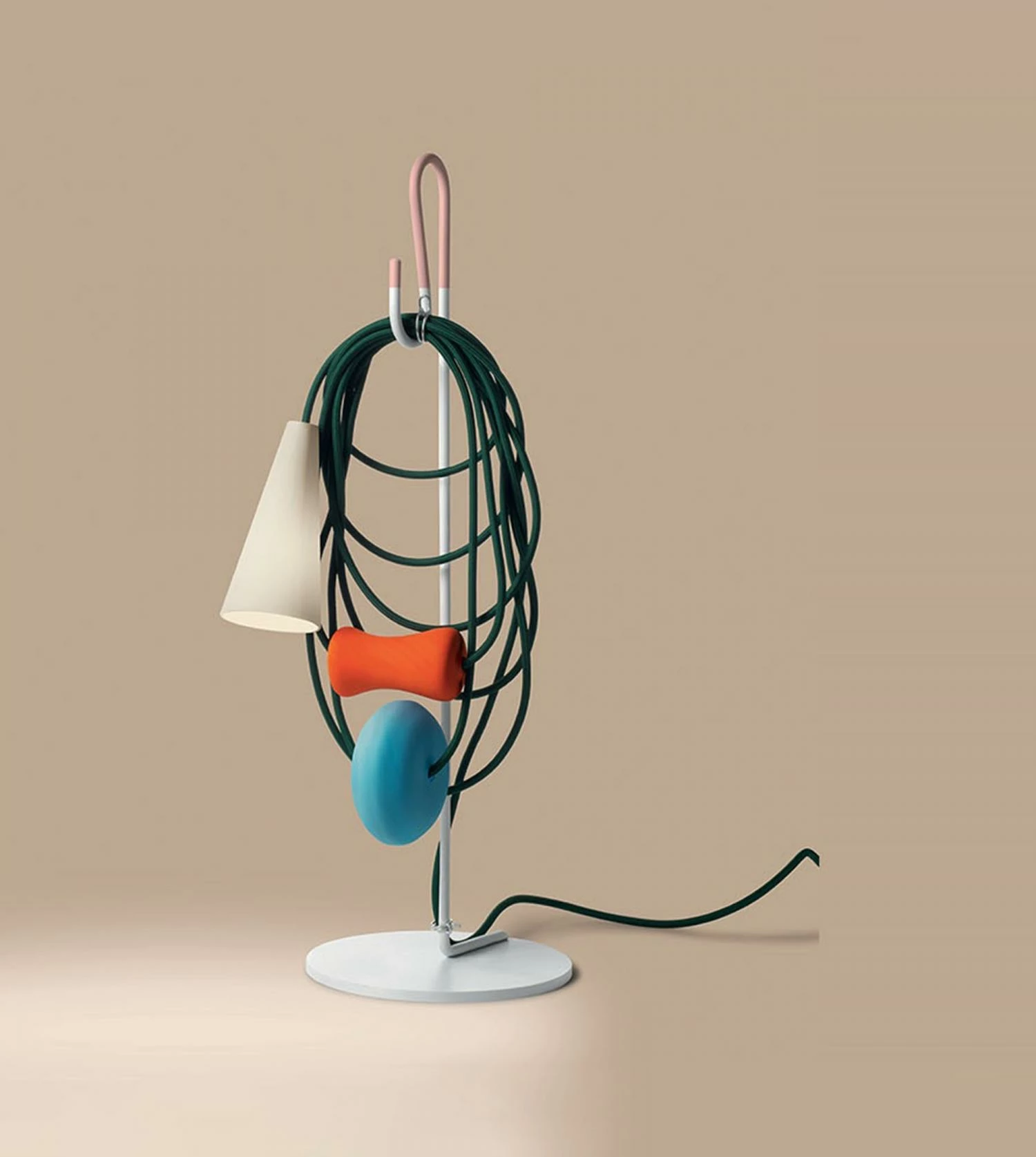 Originale et ludique, la lampe de table Filo imaginée par Andrea Anastasio pour la marque italienne Foscarini revisite et déconstruit les luminaires traditionnels dans une proposition fantasque et libre. Située à la frontière entre l’utilitaire et l’artistique, la lampe à poser design Filo Foscarini est née de la volonté de son concepteur de produire une solution d’éclairage essentielle qui fait dialoguer entre eux éléments techniques et esthétiques. Ici tout est décomposé, cordon, diffuseur, ampoule, puis associé, donnant naissance à un luminaire hors norme et créatif ponctué de sphères et autres éléments en verre soufflé colorés qui font de cette lampe un collier de lumière. Enroulé autour d’un support métallique thermo laqué, ce luminaire décliné en multiples versions colorées, en combinaisons de teintes sobres ou vitaminées (voir dans caractéristiques) est l’illustration parfaite de l’immense créativité du design italien. Tout en étant simplifiée au maximum, réduite à sa plus simple expression, la lampe de table Filo d’Andrea Anastasio met en lumière les qualités graphiques de chacun des éléments qui la composent comme la transparence colorée des modules en verre de Murano soufflé à la main.