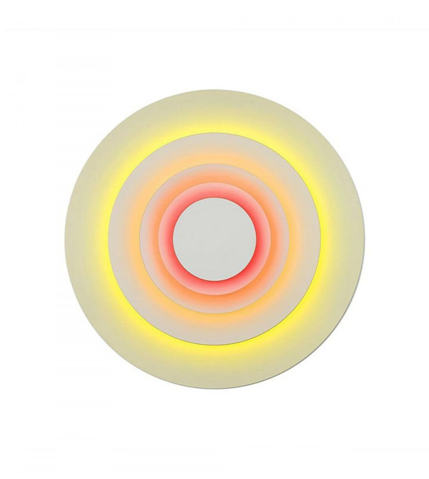 Lampe LED symétrique déclinée en 3 formats (modèles M et L en vente chez Blou – nous demander), cette applique design contemporaine pure et vibrante met en scène la rencontre entre la lumière et la couleur, donnant naissance à un tableau délicat, complexe et nuancé qu’on ne se lasse pas d’admirer. Utilisée seule ou en duo pour créer un effet symétrique, cette applique hors norme trouvera sa place autant dans les projets résidentiels que professionnels (hôtellerie, restauration, etc.). Luminaire design haut de gamme multicolore composé de cercles concentriques, cette wall lamp de la marque Marset réveillera les murs de toute la maison, de l’entrée à la chambre à coucher en passant par la salle à manger et les espaces de circulation (couloirs, escaliers, etc.). Expériences personnelles et influences artistiques sont au cœur des créations du designer américain Rob Zinn qui signe pour Marset la collection d’appliques Concentric pensées comme de véritables œuvres à exposer. Accents lunaires ou solaires, les amateurs de design et de décoration intérieure auront le choix entre les deux finitions subtiles et colorées qui donneront du relief à une pièce sans jamais l’éclipser.
