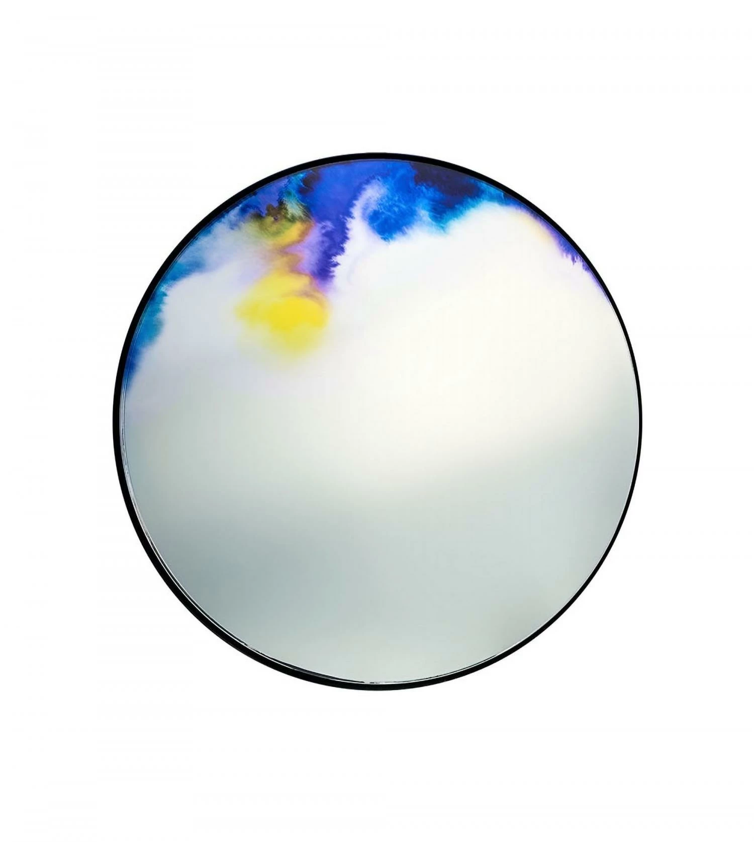 Constellé de pigments évanescents, le grand miroir Francis signé Constance Guisset pour la marque française Petite Friture est un concentré d’émotions. Glace ronde design fabriquée en aluminium et recouverte de peinture époxy, son côté graphique atypique vient de la fausse oxydation crée à partir de touches colorées (roses ou bleues selon la finition choisie) donnant à l’ensemble l’allure poétique d’une aquarelle et interrogeant sur le passage des années. Mesurer les effets du temps en mirant son reflet dans la glace devient un exercice plaisant avec la designer Constance Guisset qui signe ici une pièce fascinante et élégante qui plaira aux amateurs de décoration intérieure. Fonctionnel et beau, le grand miroir Francis d’un diamètre de 60 cm (version 45 cm en vente chez Blou) réveillera les décorations endormies avec ses touches colorées, sa sobriété chic teintée de pigments qui s’accorde avec une grande variété d’ambiances (classiques, tendance, contemporaines, etc.). Parfaite dans un salon, une salle à manger, un couloir, une entrée ou une chambre à coucher, cette grande glace fabriquée en France apportera une signature design à un lieu tout en agrandissant l’espace et jouant avec la profondeur.