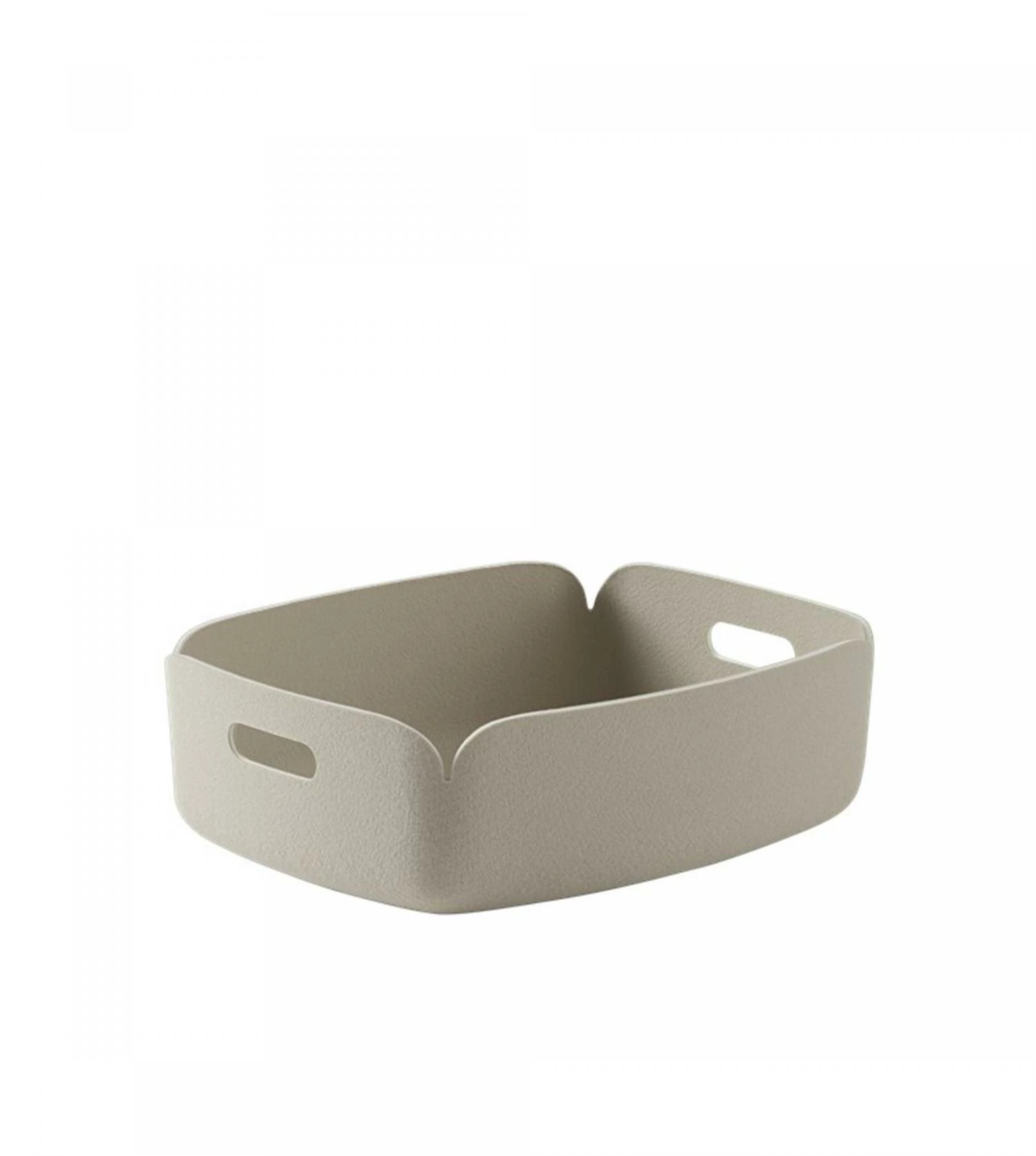 Petit frère du devenu classique panier Restore, ce panier en feutre, fait de bouteilles recyclées, un accessoire à la fois esthétique de par son allure sobre et élégante et écologique de par sa conception.