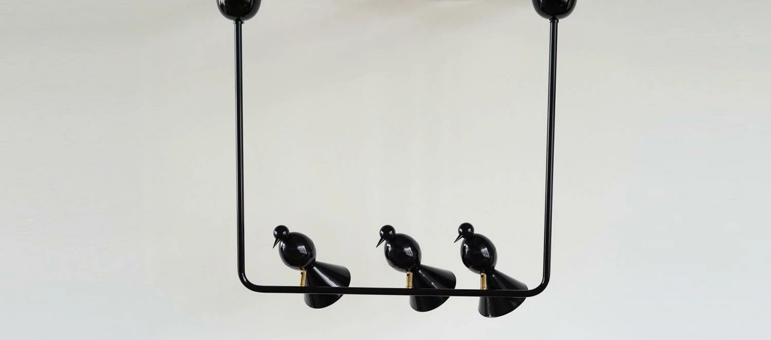 Symbole de liberté, la joyeuse alouette est devenue au fil des collections Atelier Areti l’emblème de la marque qui a décliné tout un univers lumineux à son effigie, des lampes à poser, des appliques et une gamme de suspensions dont le plafonnier en U 3 birds. Ludique et poétique le plafonnier suspension 3 Alouettes édité par Atelier Areti est également très fonctionnel grâce à ses réflecteurs orientables en forme d’oiseaux délicatement posés sur la structure en métal thermolaqué qui leur sert de perchoir. A travers ses collections inventives Atelier Areti récite l’alphabet avec ses plafonniers en forme de U, de I, ou de T (en vente chez BLOU), auxquels la marque ajoute un ou plusieurs volatiles. Petit oiseau bienveillant et charmant, l’alouette et sa bande offrent un éclairage d’ambiance optimal grâce aux trois diffuseurs à intérieur blanc ou laiton. Elégante et graphique, la lampe design 3 birds U pendant light Areti, trouvera sa place aussi bien dans un intérieur contemporain qu’au sein d’une décoration plus classique. Différentes finitions sont proposées par la marque (voir dans caractéristiques), autant de possibilité pour le luminaire d’intégrer toutes les pièces de la maison de l’entrée à la chambre à coucher en passant par le salon. La grande créativité de la maison Areti fondée en 2008 par Gwendolyn et Guillane Kerschbaumer qui ne propose que des pièces fabriquées artisanalement avec des matériaux rigoureusement sélectionnés a su séduire les passionnés de décoration et amateurs de design du monde entier. Avec Atelier Areti l’excellence n’est pas une option, c’est un art de vivre. En quelques années la maison Areti a su se faire un nom dans l’univers du luminaire design. Avec le plafonnier en U 3 Alouettes, oiseau de bonne augure , le succès est parti pour durer.