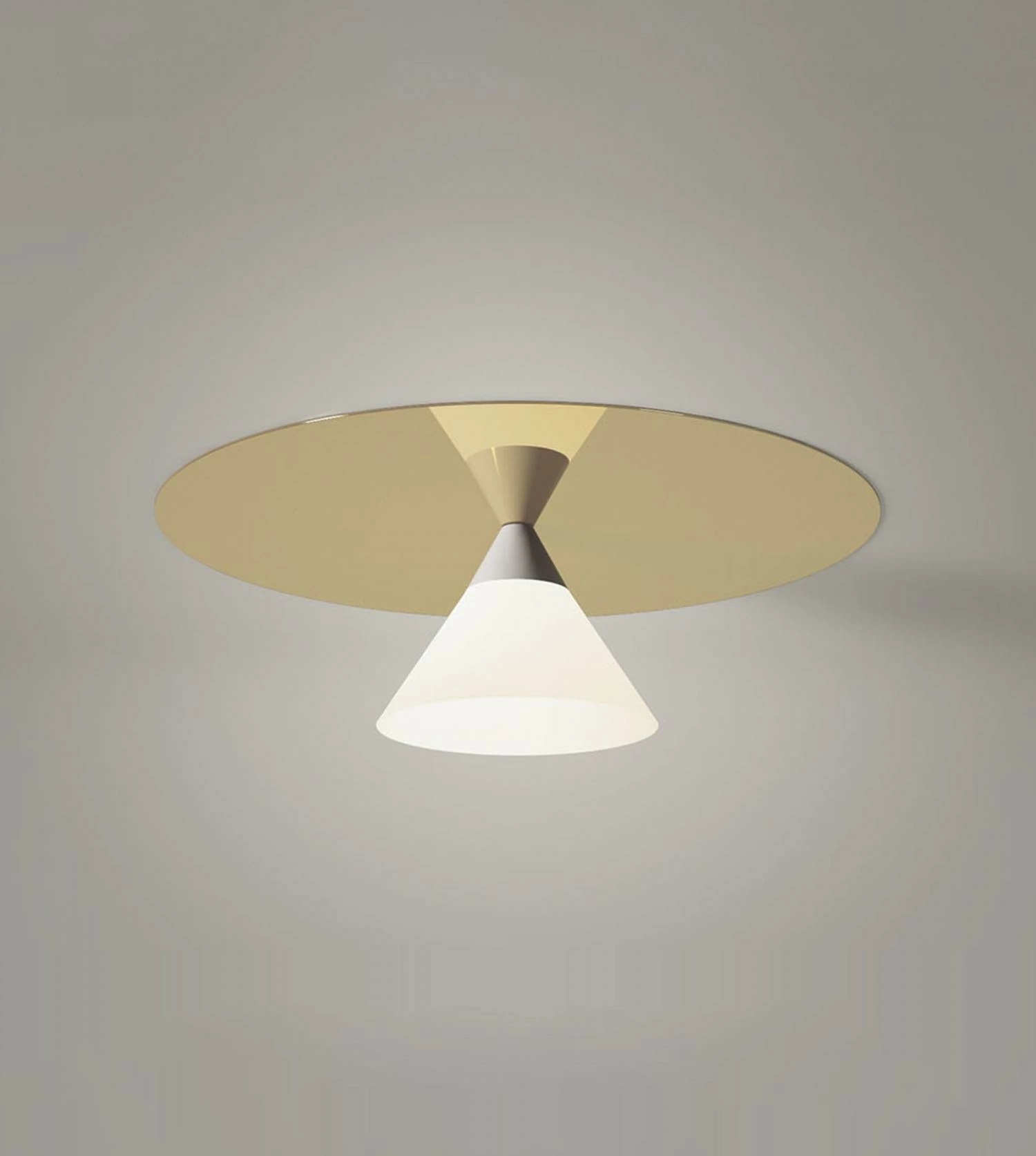 Sobre et élégant le plafonnier plate and Cone édité par la maison Atelier Areti permet d’éclairer avec douceur toutes les pièces de la maison de l’entrée à la chambre à coucher en passant par le salon et la salle à manger. Luminaire design délicat en laiton, la lampe plate and cone ceiling light Areti composée d’un réflecteur conique en verre soufflé opalescent et d’une structure ronde en forme de disque séduira l’amateur de décoration par sa présence radieuse et solaire. La marque Areti exploite les propriétés réflectives du laiton, joue sur l’effet miroir du disque et double ainsi la lumière émise par l’unique ampoule du plafonnier. Moderne et chaleureux, ce luminaire fabriqué en Allemagne par de talentueux artisans est né de l’heureuse association entre deux formes géométriques, le disque et le cône. A l’image de l’ensemble du catalogue Atelier Areti la vocation de cette pièce lumineuse design est de durer au moins cent ans, un long siècle pendant lequel elle se doit d’être belle et fonctionnelle, subtile et raffinée. Le laiton, matériau noble par excellence, permettra au plafonnier Plate and Cone Areti d’intégrer des intérieurs classiques. Son minimalisme et son graphisme lui ouvriront aussi les portes des univers plus contemporains. Depuis 2008 la marque Atelier Areti fondée par Gwendolyn et Guillane Kerschbaumer enchante l’univers du design et de la décoration à travers des collections aux influences multiples, et aux ambitions différentes. Du plafonnier Motive Long (en vente chez BLOU) à la lampe Plate and Cone ceiling light les luminaires Areti changent de forme et de dimension mais restent fidèles à la ligne de conduite de la maison : l’excellence.