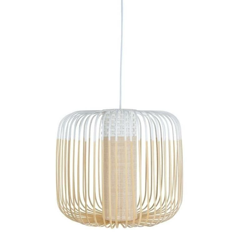 Pendant light design tressée, la suspension Bamboo M Forestier imaginée par Arik Lévy fait autant d’effet éteinte qu’allumée.