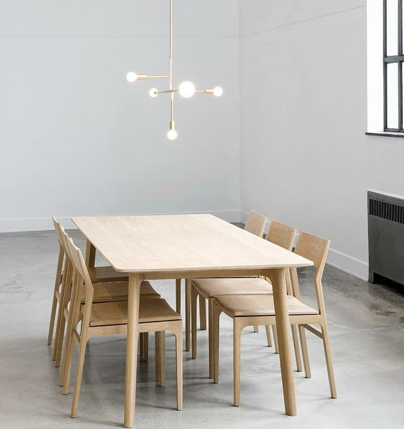 Idée déco : inviter la suspension Cliff au dessus d’une table Prouvé EM VITRA en bois massif et piètements en acier.