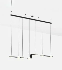 En associant 3 des luminaires issus de sa collection Laurent (06, 07 et 03 disponibles chez BLOU), la maison québécoise Lambert et fils propose une suspension design singulière et théâtrale, bousculant les codes, fusionnant les genres. De dimension architecturale, la suspension Laurent 14 de la marque Lambert et fils intrigue et fascine. 7 globes opalins blancs retenus par autant de câbles noirs partent à la rencontre de structures linéaires, donnant naissance à une composition dynamique et contrastée. Résolument graphique, la suspension Laurent 14 met en avant la sphère et le cercle à travers trois déclinaisons regroupées en un seul luminaire qui ne manque ni d’allure ni d’envergure (long de 2.56 m). Depuis 2010 la marque montréalaise fascine les amateurs de design et de décoration par ses luminaires originaux et audacieux nés des multiples inspirations des designers œuvrant au sein du studio collaboratif maison, lieu propice à la créativité et à l’expression de la virtuosité de chacun. Epure chère au Bauhaus, esprit industriel ou asymétrie revendiquée par le courant Memphis, c’est en puisant dans le répertoire classique du design que la maison Lambert&fils est parvenue à créer son propre style, unique et magique. La suspension Laurent 14, hors norme par sa taille et sa composition réveillera une décoration traditionnelle ou s’intégrera parfaitement à un univers plus tendance. Dans un salon, une salle à manger ou un hall d’entrée on lui réservera une place de choix pour la laisser faire ce qu’elle sait faire de mieux : briller.
