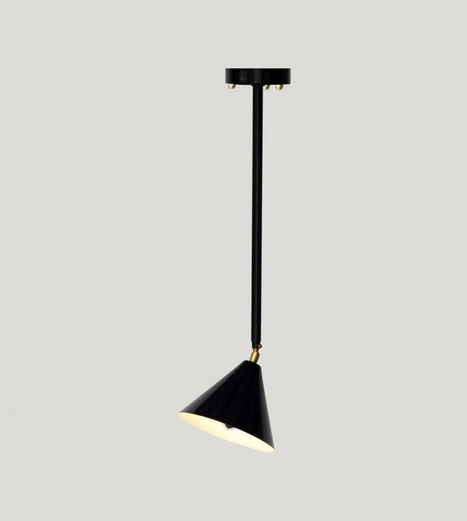 La marque de luminaires design Atelier Areti a décliné sous le nom de Periscope une gamme de suspensions qui comme l’instrument d’optique dont elles s’inspirent possèdent une silhouette longiligne et permettent de voir par-delà les obstacles. La suspension Periscope 1 cône en métal thermolaqué noir prolongée par un abat-jour orientable grâce à une rotule en laiton possède la même élégance et la même fonctionnalité que la lampe Periscope 1 Sphère (en vente chez BLOU) tout en optant pour une figure géométrique différente, la forme conique plutôt que la sphère. Solution d’éclairage minimaliste et design, la lampe Periscope 1 Cone pendant light Areti s’intègre à tout style d’intérieur, design ou classique, et diffuse grâce à son réflecteur une lumière délicieusement enveloppante et chaleureuse idéale au-dessus d’une table de salle à manger ou d’un canapé. Le studio Areti basé à Londres propose depuis 2008 des luminaires design fabriqués artisanalement et à la commande dans des matériaux nobles superbement travaillés. Pièces authentiques destinées à traverser allègrement les années, les luminaires de la marque Areti possèdent toutes les qualités pour devenir des incontournables du design et de la décoration. A l’image de toutes lampes éditées par Atelier Areti, la suspension Périscope 1 Cône a toutes les cartes en main pour devenir un classique du luminaire. I(conique).