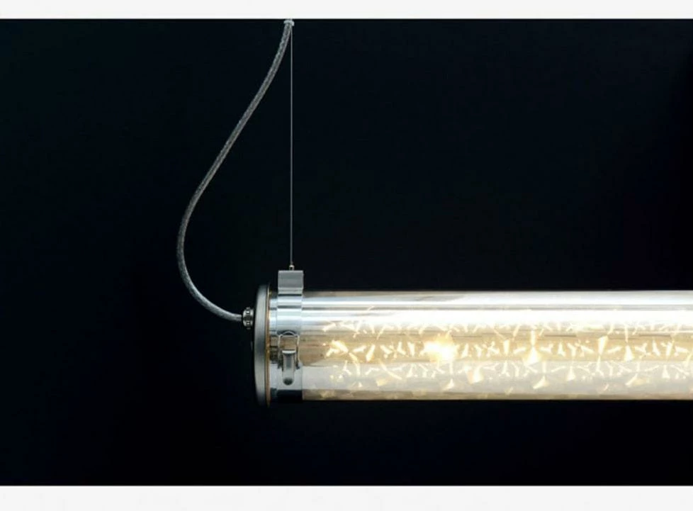 Grand nom de l’éclairage industriel et technique Sammode a brillamment réussi son entrée dans l’univers du luminaire design en fondant un studio dédié à la création de lampes pour la maison. En mettant son savoir-faire industriel exceptionnel au service du design et de la décoration, Sammode Studio a donné naissance à des appliques, suspensions et lampes à poser remarquablement performantes et résistantes, à l’esthétique atypique. Etanche et capable de supporter les assauts du quotidien la suspension Qinu se fondera dans tous les décors, dans les lieux les plus extrêmes (salles de bains, cuisines, terrasses, jardins, etc.) aussi bien que dans les pièces les plus chaleureuses et douillettes de la maison (salons, chambres à coucher, etc.). Chic et charismatique, cette pendant light transparente cylindrique appartient à une gamme de luminaires tubulaires design devenue la signature de la marque vosgienne. En confiant au plasticien français Yann Kersalé le soin d’imaginer une collection de suspensions pour la maison, Sammode Studio a su donner une nouvelle dimension aux luminaires. Capable de fournir un flux lumineux sur 360° lorsqu’elle joue le rôle de suspension, la lampe Qinu Sammode Studio, solution d’éclairage ultra performante, est également un accessoire décoratif haut de gamme constellé de prismes kaleidoscopiques. Une réussite lumineuse 100% française.