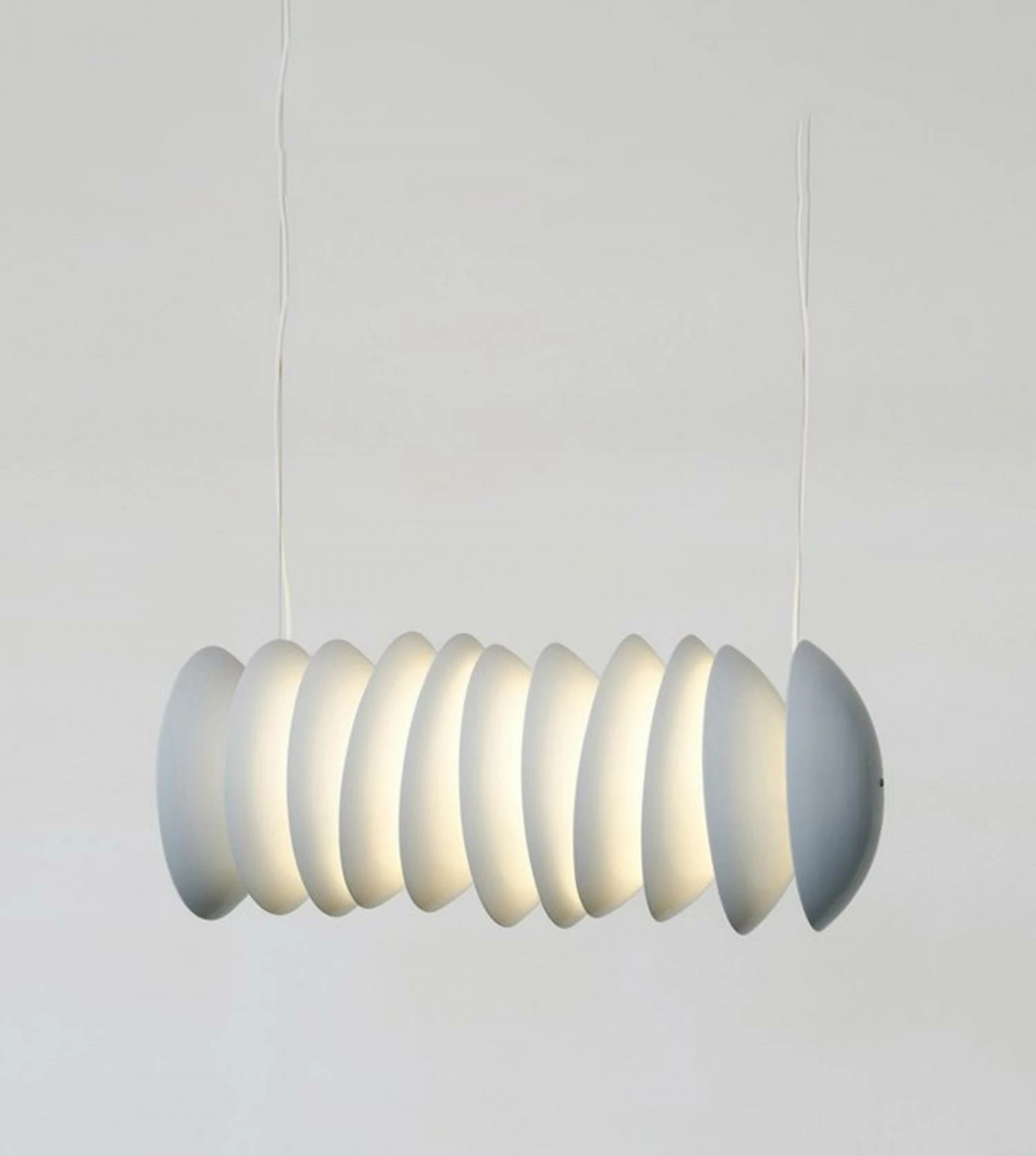 Intrigante et poétique, la suspension design Stacks éditée par la maison Atelier Areti réveillera avec douceur et bienveillance tous types d’intérieurs (décoration contemporaine ou classique). Composée de 11 disques en métal laqué blanc disposés les uns à côté des autres, dans un empilement (« stack » en anglais) inversé, cette pièce lumineuse originale et fascinante joue sur l’illusion avec légèreté et harmonie. La lampe Stacks pendant light Areti porte en elle les multiples influences du duo de designers à la tête de la maison depuis ses débuts en 2008, Gwendolyn et Guillane Kerschbaumer, qui ont su insuffler des dimensions architecturales et sculpturales à leurs collections lumineuses. Son tube fluorescent fait de la suspension design Stacks Atelier Areti une solution d’éclairage performante et sa silhouette atypique et élégante lui donne le statut d’œuvre à part entière autour de laquelle toute une décoration pourrait s’articuler. Grande suspension moderne opaline, la lampe Stacks apporte la clarté et la douceur nécessaires pour habiller de lumière et sublimer les lieux qui sauront l’accueillir. Luminaire parfait pour un salon, une salle à manger ou une chambre à coucher la suspension Stacks Areti incarne l’esprit de la marque qui a l’incroyable talent de sublimer le quotidien en proposant des lampes belles et fonctionnelles, poétiques et atypiques (comme la suspension Mimosa en vente chez BLOU). Fabriquée à la main par des artisans installés en Allemagne, la suspension Stacks aux disques métalliques flottants séduira le passionné de design par son authenticité, sa créativité et sa silhouette originale. Depuis ses débuts la maison Areti a su se faire une place dans l’univers du luminaire design par son inventivité et par le soin particulier apporté à la conception de chacune de ses pièces. En faisant d’un amoncellement de disques une œuvre poétique, Atelier Areti prouve une fois de plus l’étendue de son talent.